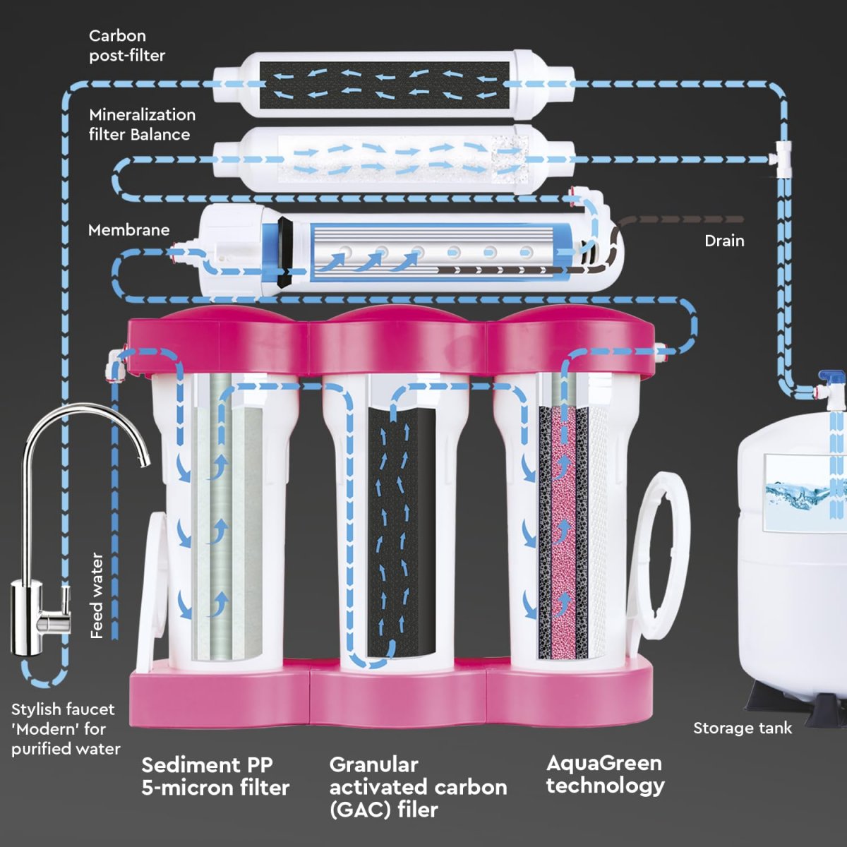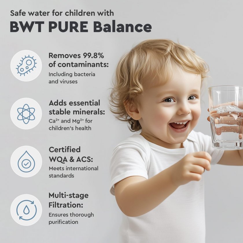 Avancerad omvänd osmos-teknik: Säkerställer en säker vattenkvalitet som är lämplig för barn genom att ta bort 99,8 % av föroreningarna, inklusive fluor, bly, kloraminer, PFAS (PFOA och PFO), bakterier och virus.