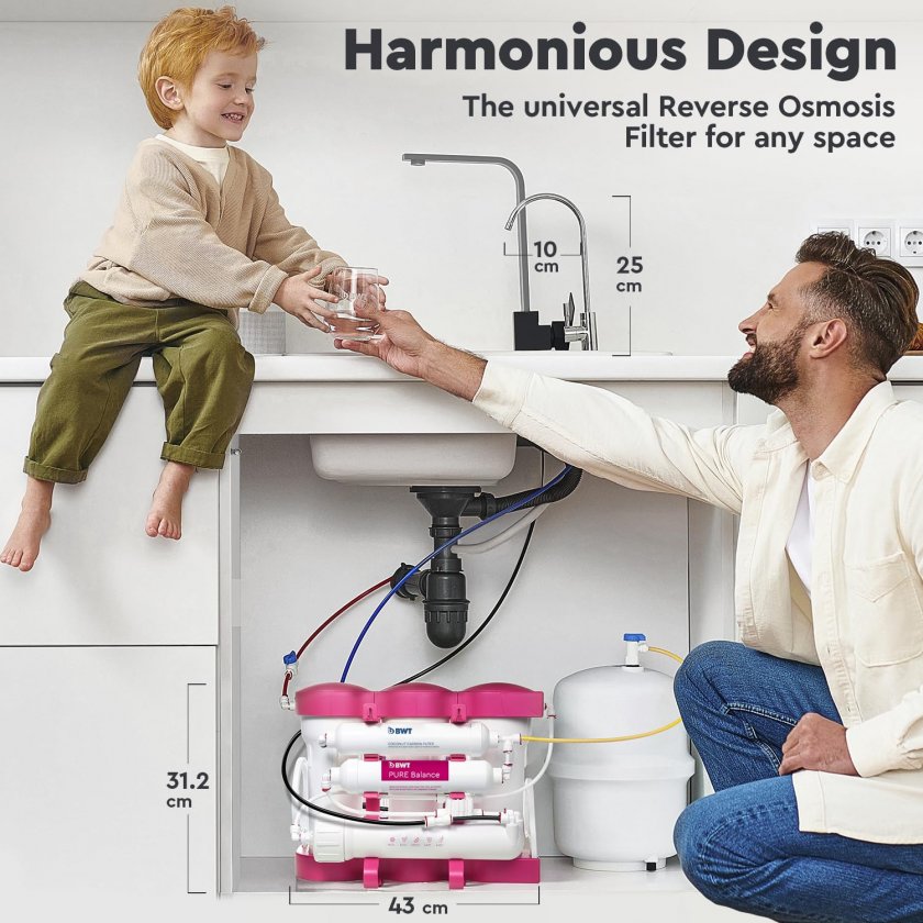 Enkel installation: Enkel självmontering med högkvalitativa anslutningar, färgkodade slangar och instruktionsvideor. Systemet kan installeras utan att ändra köket, vilket garanterar en ostörd köksmiljö.